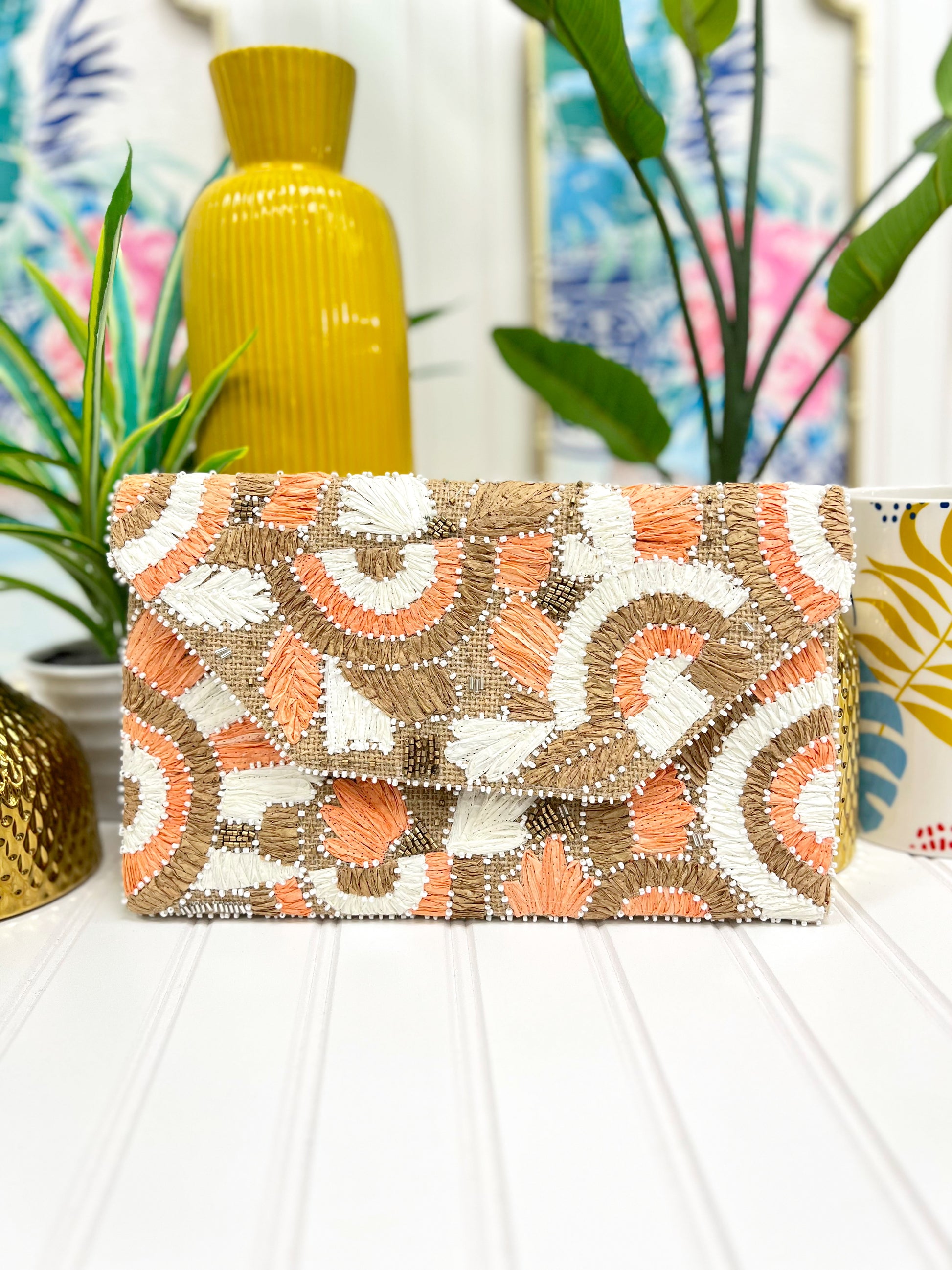 Jute raffia clutch bag.