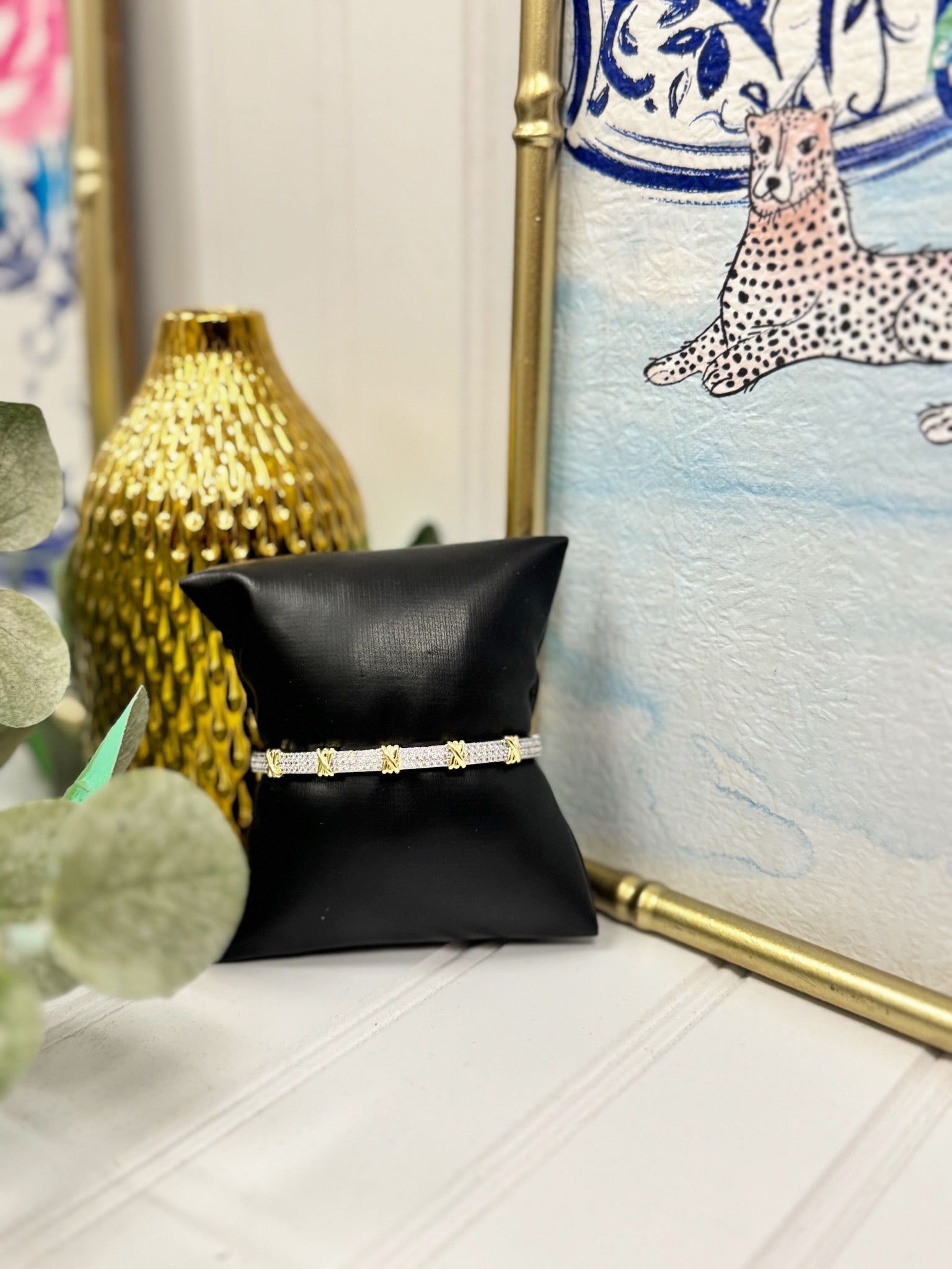 Pave CZ X station bangle bracelet.
